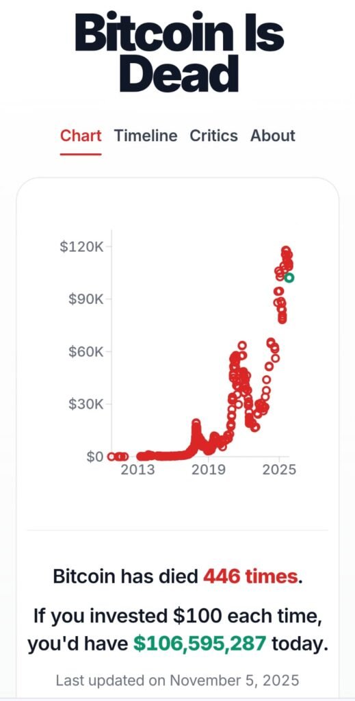 If you actually look at the numbers, Bitcoin has been officially declared dead 446 times since 2010.