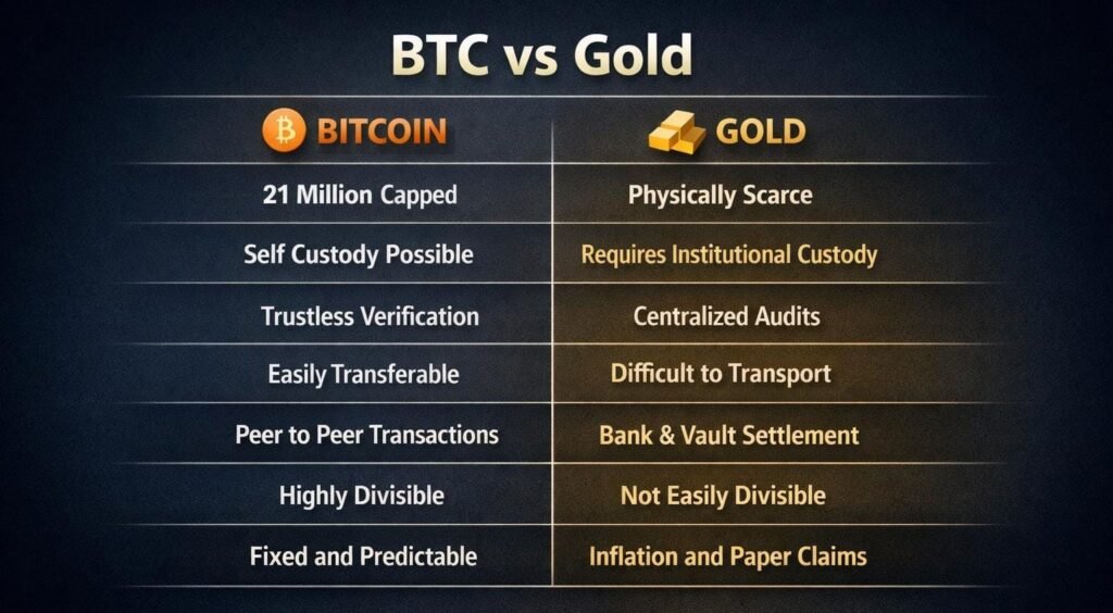 Gold settlement depends on institutions. Bitcoin settles natively across a decentralized global network.
