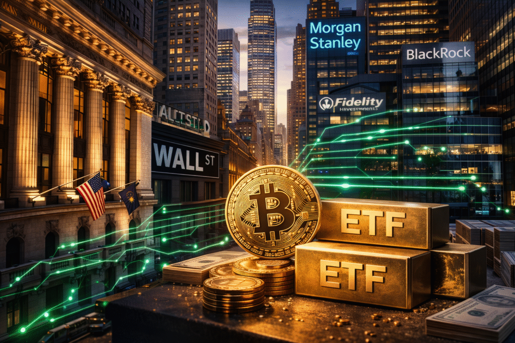 Institutional Bitcoin ETF adoption grows as Morgan Stanley joins BlackRock and Fidelity, signaling deeper Wall Street involvement in Bitcoin.