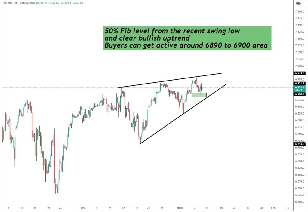 This retracement level is commonly where buyers step in during trending markets. The 6890 to 6900 zone stands out as an area where risk can be clearly defined rather than chased emotionally.